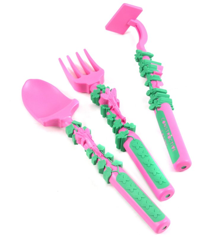 The Constructive Eating Garden Fairy Plate and Utensil Set is an award-winning design for children that encourages eating and fun at the dinner table!